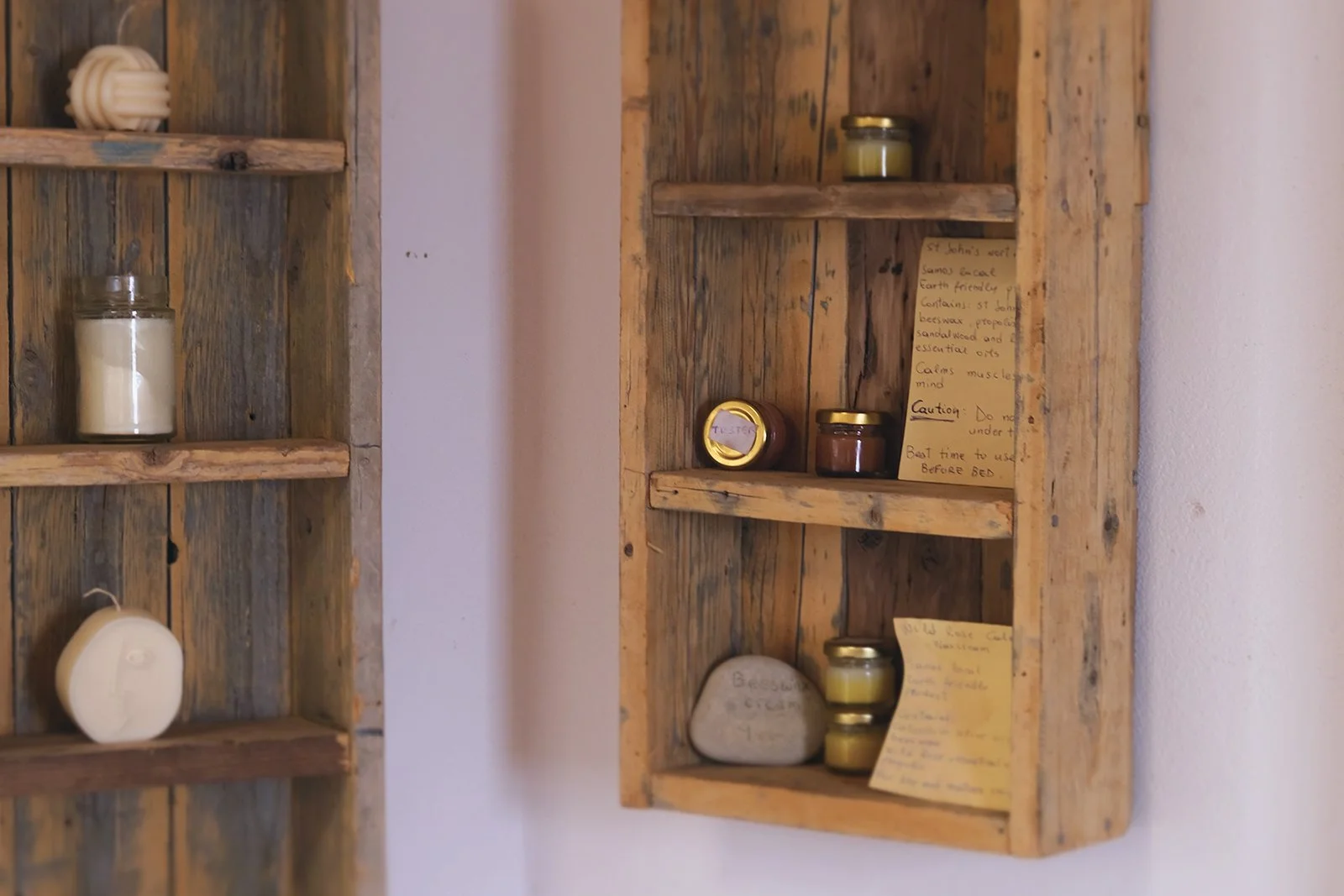 Vår guide för dagen, Kiki, möter oss på gårdsplanen med ett glatt leende och berättar att torkugnarna går för fullt idag så vi får stå ut med ljudet. Det ligger en tung doftmatta över fabriken: rostad oliv är en arom jag inte stött på innan men snabbt kan identifiera; intensiv och fyllig. Medan vi väntar in resten av sällskapet kliver vi in i den nyrenoverade butiken: nyss påfylld med tvålar i olika format, hudvårdande oljor, bivaxbalsam, naturliga pimpstenar och handgjorda tvålfat i keramik.